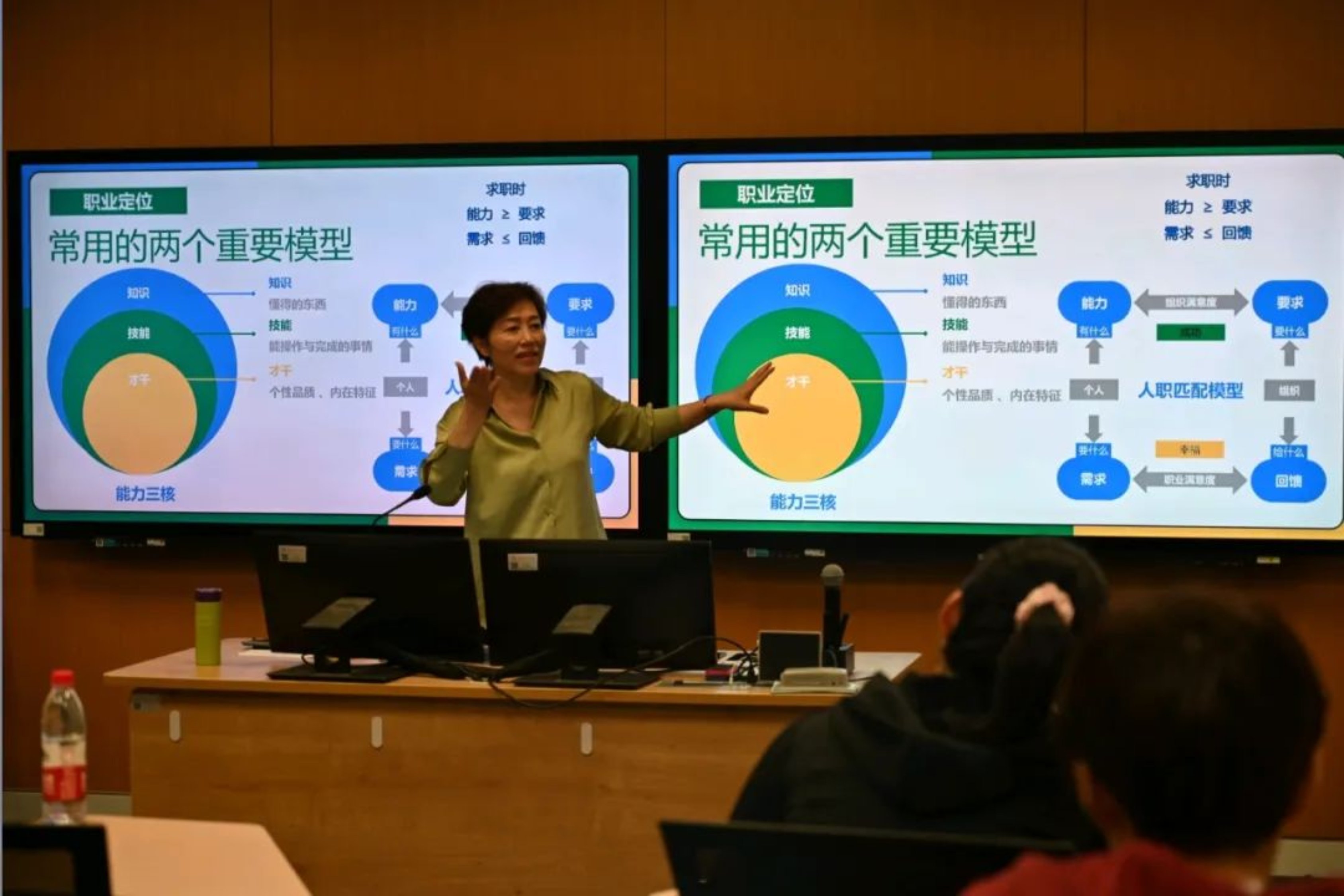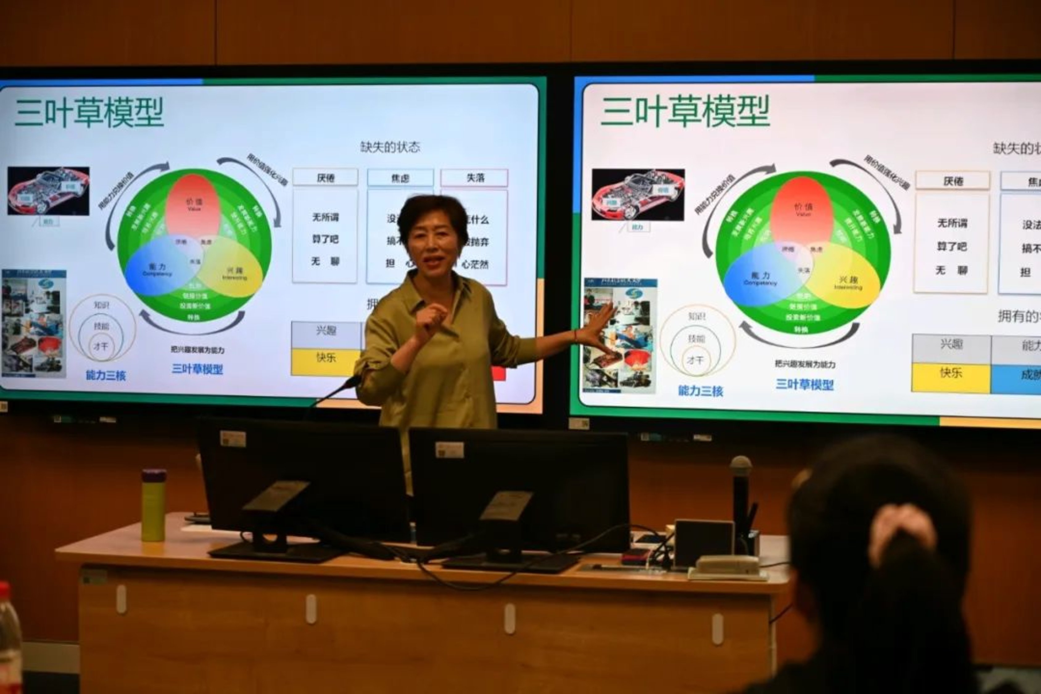 张老师通过三叶草模型——兴趣、能力和价值,阐述了个人职业发展的动力和方向。她鼓励同学们将兴趣转化为能力,用能力实现价值,从而在职业道路上获得快乐和满足。