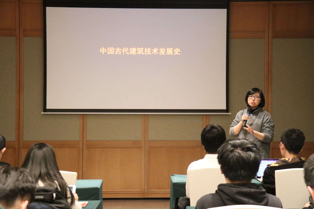 晚饭后,查群老师又马不停蹄的为大家奉上“中国古代建筑技术发展史”主题讲座。查老师首先结合自身经历和思想转变,鼓励大家广泛涉猎,勇于尝试,选择自己喜欢的学习方向。随后,查老师由架、剖面、立面等基本概念讲起,按照时间顺序,为同学们大致梳理中国古代建筑技术从“远古河姆渡的起源 夏商青铜时代雏形 春秋战国发展 第一个发展高峰:秦 过度变形:三国两晋南北朝 第二个发展高峰:隋唐五代 第三个高峰期+明 技术上继续发展,装饰更为繁复:清”的发展脉络。为更好地激发同学们的兴趣,查老师向同学们展示她现在所从事的布达拉宫保护项目的视频,引得同学好奇不已 。最后,姜萌老师再次强调,希望通过课外实践教学的方式,帮助同学找到兴趣方向所在,同时为同学们提供接触裸聊直播