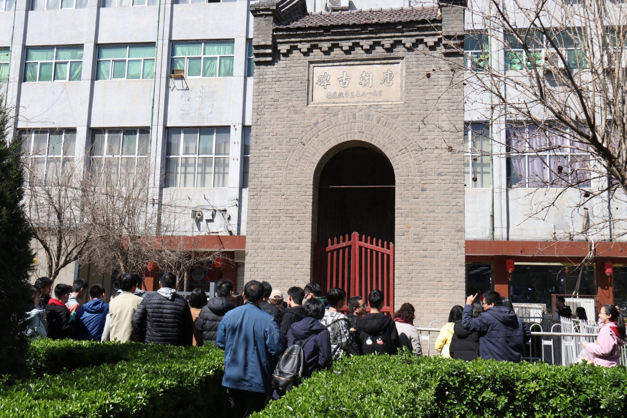 接着,师生又马不停蹄地赶往正定考察下一站 开元寺。开元寺在正定常胜街西侧,原名净观寺,始建于东魏兴和二年(540),唐开元二十六年(738)奉诏改今名,清后期,年久失修,寺院废毁,殿堂塌落,仅存钟楼和须弥塔。进门处的残碑基座引人注目,张永波老师告诉大家,其造型为龙生九子之长 赑屃,似龟,有齿,力大,好负重,因此其经常出现在石碑之下,而这座赑屃重达107吨,为国内最大。“碑座已经如此之大,那碑该有多大呢?”好奇的同学提问,张老师将大家带至左侧陈列 目前已经发现的18块五代时期的断碑碎片,“光线好的时候还可以看到清晰的碑文,字迹清秀飘逸。”张老师补充道,这座碑是安重荣的功德碑,但是被人为破坏了,有学者认为,这可能是石敬瑭为安重荣所立,在安重荣失败后又被石敬瑭破坏。