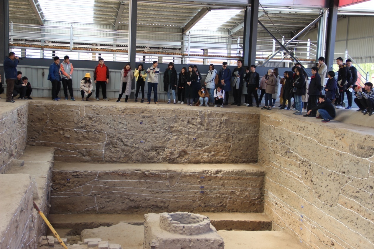 中午时分,师生来到开元寺旁边的开元寺南广场遗址考古工地。考古队队长陈伟老师对同学们的到来表示热烈欢迎,简单介绍遗址概况后,便带领同学们参观挖掘现场。时至中午,陈老师依然认真风趣的为同学们讲解考古发掘的情况和此次发掘的价值,同学们也兴致不减,频频提问,并就出土城墙遗址对正定古城形制展开讨论。最后,陈队长热切鼓励有志同学日后加入考古队伍之中,为国家的文化建设贡献力量。