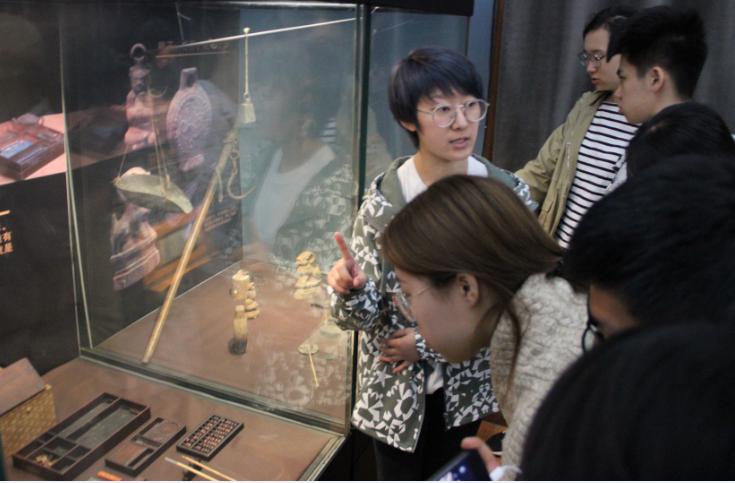 最后,师生一行在姜涛和姜萌老师带领下重点参观总督署的几个主要陈列。在“天下衙门 中国古代衙门文化专题陈列展”中,姜涛老师结合展板上的清代直隶地方行政范围、军事布置等情况,为同学们简要讲解了八旗制度、绿营兵及清代军事管理体系等问题。姜涛老师还结合展厅里的火炮,为同学们初步讲解了清代中国火炮的变化,及清代武器的演变情况。姜萌老师建议同学们可以阅读李伯重先生的《火枪与账簿》等书籍,进一步了解相关问题。