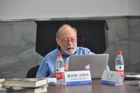 图为唐纳德·沃斯特教授在赠书仪式上致辞