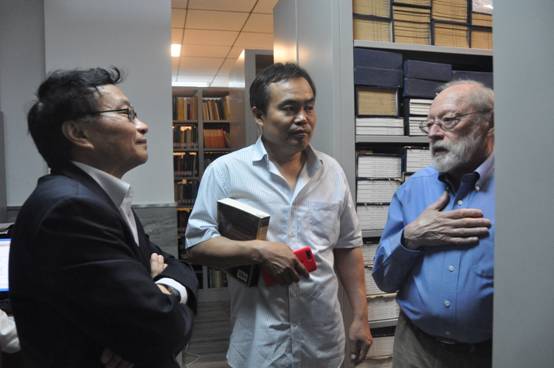 赠书仪式后,与会人员前往历史系尚钺资料室,参观了沃斯特先生捐赠的两千多本藏书。随后,北京大学历史系王希教授做了题为“Donald Worster: Rebel, Thinker, Humanist and Transnationlist”的主旨发言,高度赞扬了沃斯特先生的学术成就,认为沃斯特先生是一位杰出的人文主义学者,他对人类与自然之间的关系以及人类的未来的深切关注和深刻的思考,激发人们在更高的层次上重新反思人类自身的命运。