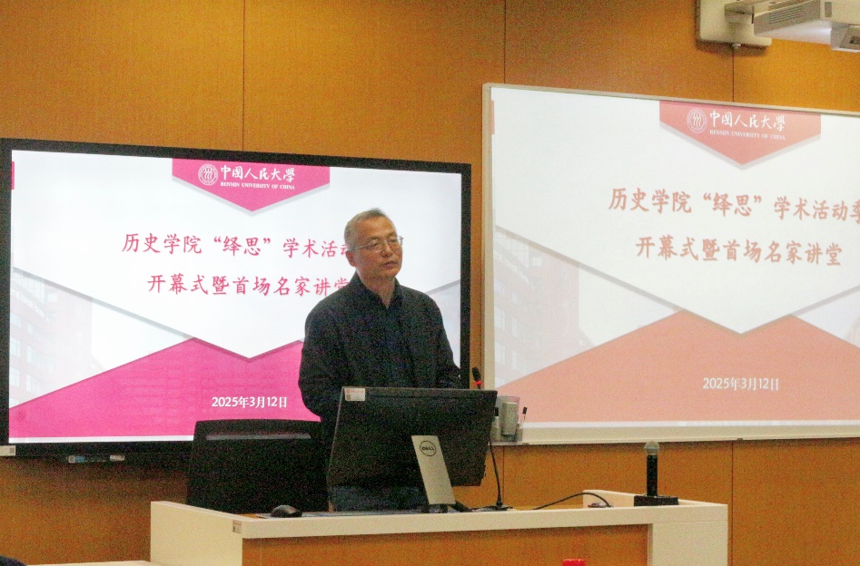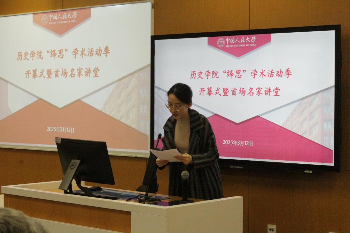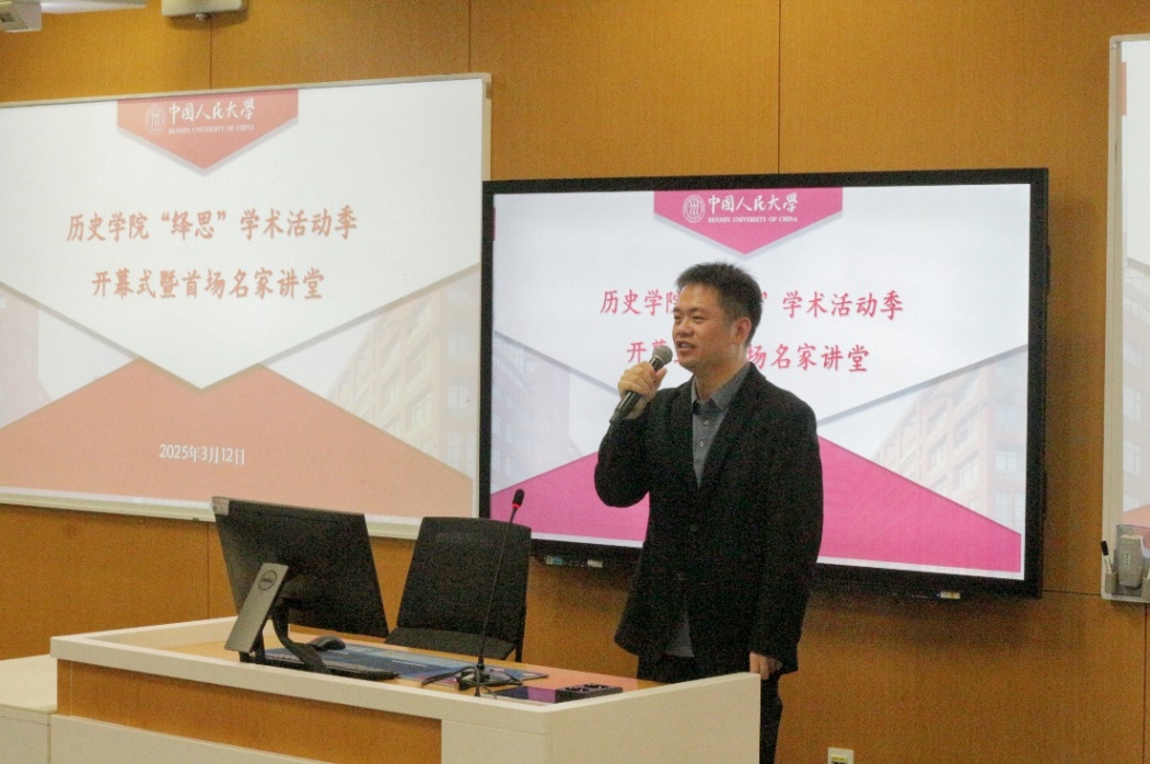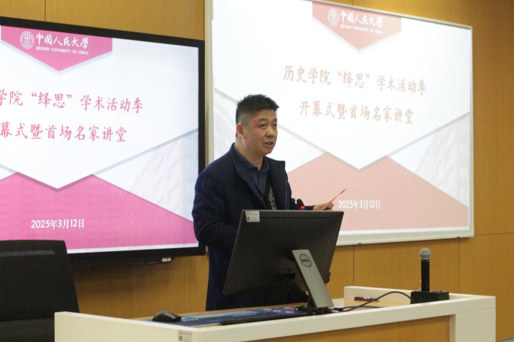 2025年3月12日,裸聊直播-裸聊直播app “绎思”学术活动季开幕式暨首场讲座在立德楼607教室举行。裸聊直播 学术委员会主任黄兴涛、中国人民大学团委书记熊宇平,院长朱浒、党委副书记白洁、团委书记李彦沨、团委副书记王晨郁、裸聊直播 各教研室教师代表出席,学生代表六十余人参会。开幕式由裸聊直播 党委书记吕学明主持。