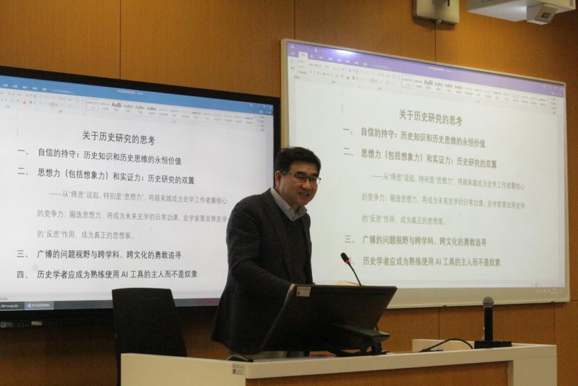 讲座最后,黄兴涛教授向师生寄语。他认为历史学的未来寄托在年轻一代史学工作者的身上,未来历史学能够达到的高度,将取决于他们的思想力与创造力。黄兴涛教授殷切地鼓励年轻史学工作者们树立更高的标准,胸怀壮志雄心,为历史学的繁荣与发展贡献自己的智慧与力量。