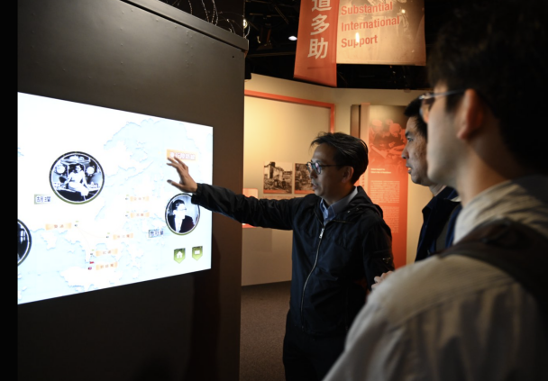 12月5日上午,调研团来到香港历史博物馆,参观“万众一心 维护和平——纪念抗战胜利八十周年展览”。香港历史博物馆助理馆长周俊基为调研团师生介绍展览策展情况、同调研团师生展开交流。