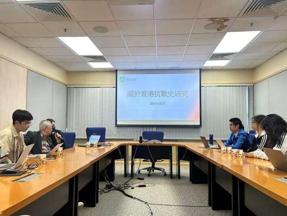 刘蜀永教授向调研团讲述了岭南大学校史以及自身的学术生涯,将香港抗战史研究及编纂香港地方志的历史过程徐徐铺陈。香港沦陷的三年零八个月期间,港九大队是香港唯一一支成建制、自始至终坚持抵抗的抗日武装力量。自1980年代起,大批老战士的口述史史料得以汇编留存,形成了一批重要参考史料。2017年,《港九大队志》编纂工作启动,经过深入的档案挖掘和田野调查,展现了中国共产党在国家存亡紧要关头的历史担当和港人的爱国传统。