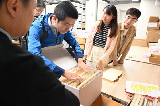 师生们首先前往香港大学冯平山图书馆特别馆藏部,与冯平山图书馆副馆长李俊祺和张爱莉老师就古籍的收集、保护与利用展开了交流。随后,调研团成员围绕研究课题,针对性地查阅、摘录了特别馆藏部馆藏的“香港华商特藏·香港中医药组合档案”与“港九大队老兵口述档案”,在史料梳理中进一步夯实研究基础、明晰问题意识。调研团成员、2025级硕士生王溪绚说:“当亲手接触到与东江纵队港九大队革命活动相关的人物口述材料时,一种主动走进历史深处的探索欲,以及与往昔真实对话的亲切感油然而生。”