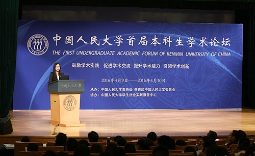 4月9日至10日,中国人民大学首届本科生学术论坛主论坛和分论坛举行。中国人民大学副校长刘向兵、洪大用出席论坛开幕式。中国人民大学党委副书记吴付来、副校长洪大用担任论坛组委会主席,20位老师在主论坛和分论坛现场点评学生论文并参加研讨。论坛入选学术论文33篇,现场宣读论文26篇。